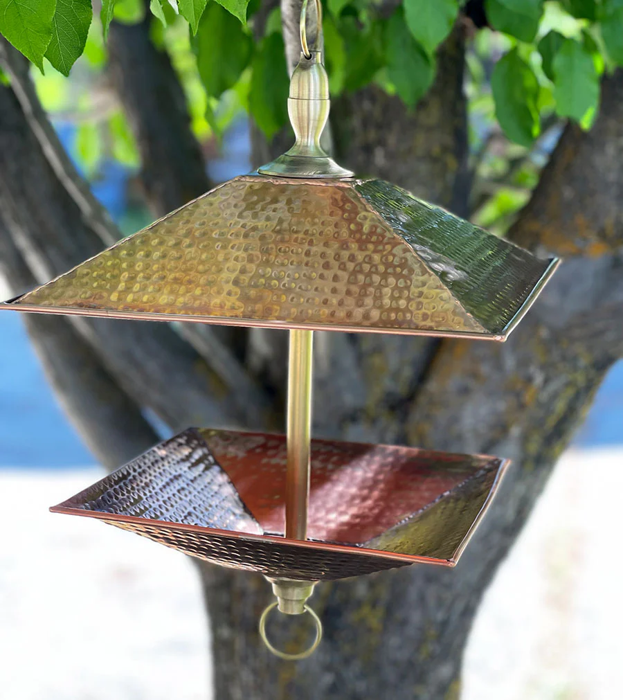 This item is handcrafted, so the hammered copper finish on each bird feeder will have it's own unique variations. Keep in mind, it will patina over time!